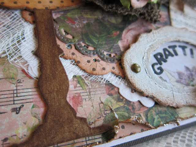 Provdockan från Tim Holtz är verkligen en favorit i pysselväskan. Här blev det prickig klänning och svart spets. Jag har stansat ut den i tjock kartong och färgat in med distressdyna.